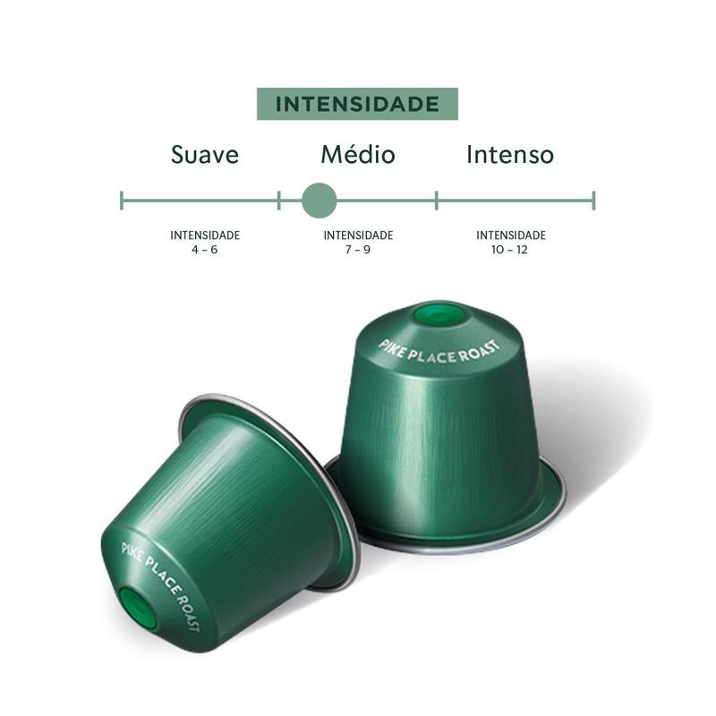 Desde a nossa primeira loja no Pike Place Market em Seattle, às nossas lojas ao redor do mundo, ao longo do dia, os clientes solicitam um café fresquinho e recém preparado para desfrutar. Um harmonioso e suave blend de grãos da América Latina, com leve sabor de chocolate e castanhas tostadas é diariamente servido fresco nas lojas Starbucks perto de você. Desfrute do Starbucks® Pike Place® Roast em casa através destas cápsulas para máquinas Nespresso®.