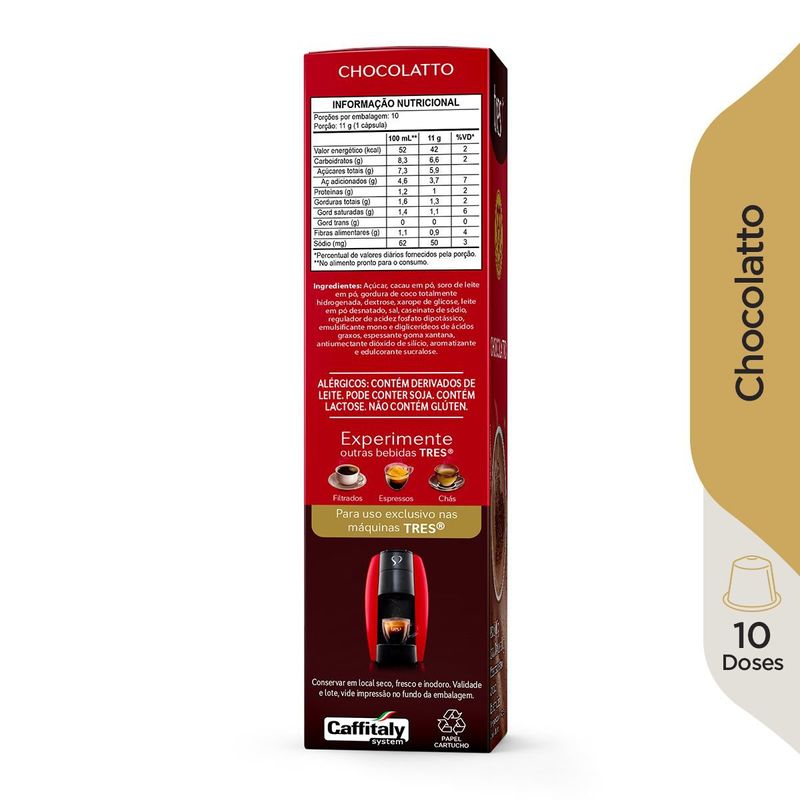 Chocolate Quente em Cápsula 3 Corações Chocolatto Tradicionalicional 11g c/ 10 Unid