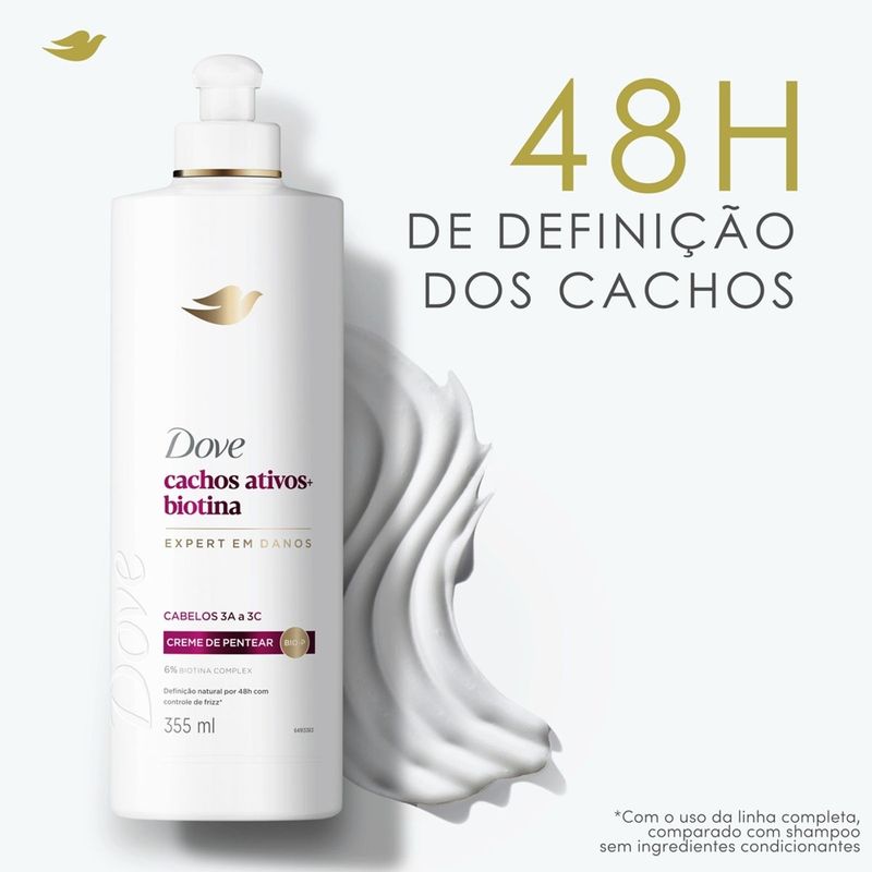 Dove Creme de Pentear Cachos Ativos + Biotina foi criado para realçar a beleza natural dos cabelos cacheados. Enriquecido com 6% Biotina Complex, proporciona até 48h de definição sem rigidez, enquanto nutre profundamente cada mecha*.