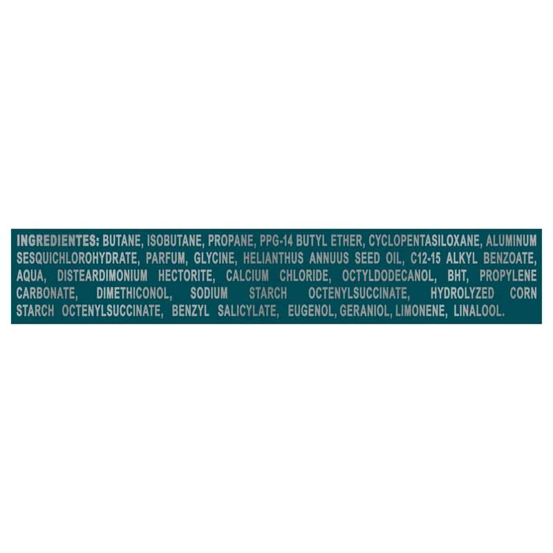 • A fórmula do Antitranspirante Aerosol Masculino Rexona V8 contém 0% de álcool etílico