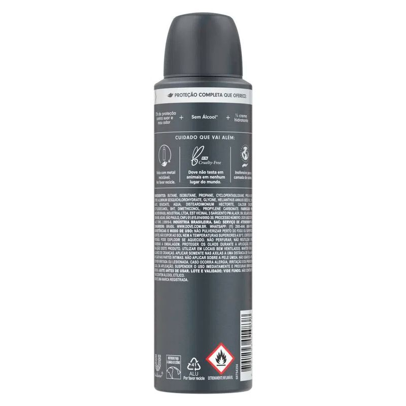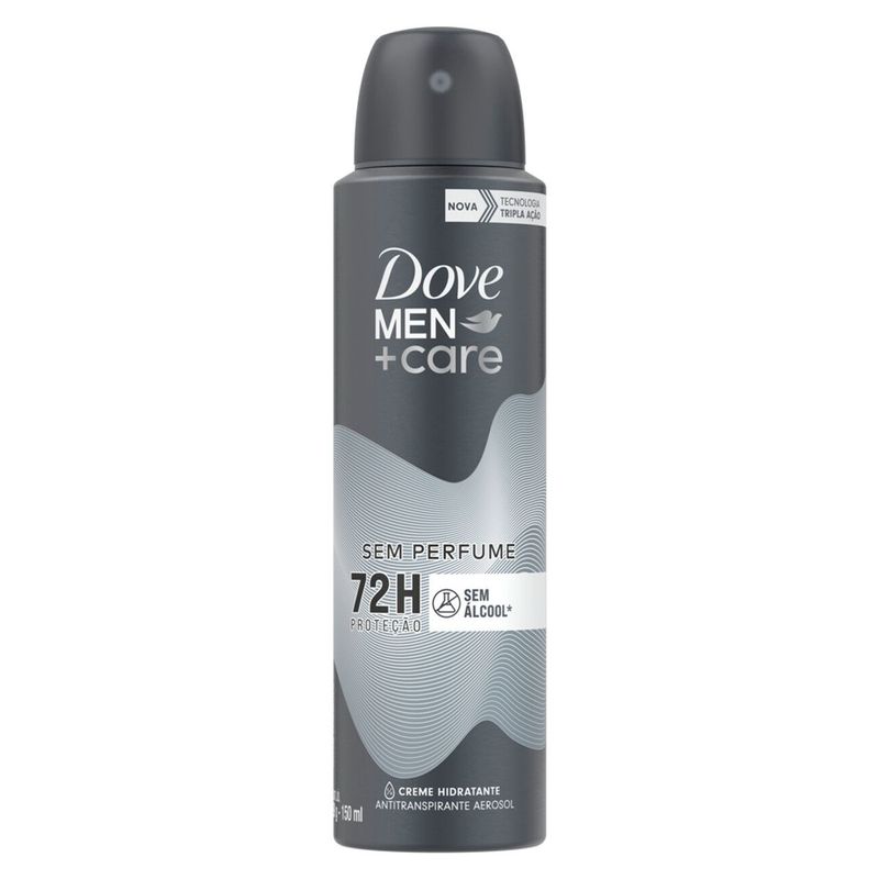 • O Desodorante Aerosol Dove Men+Care Sem Perfume é adequado para pele sensível e protege contra o suor e mau odor