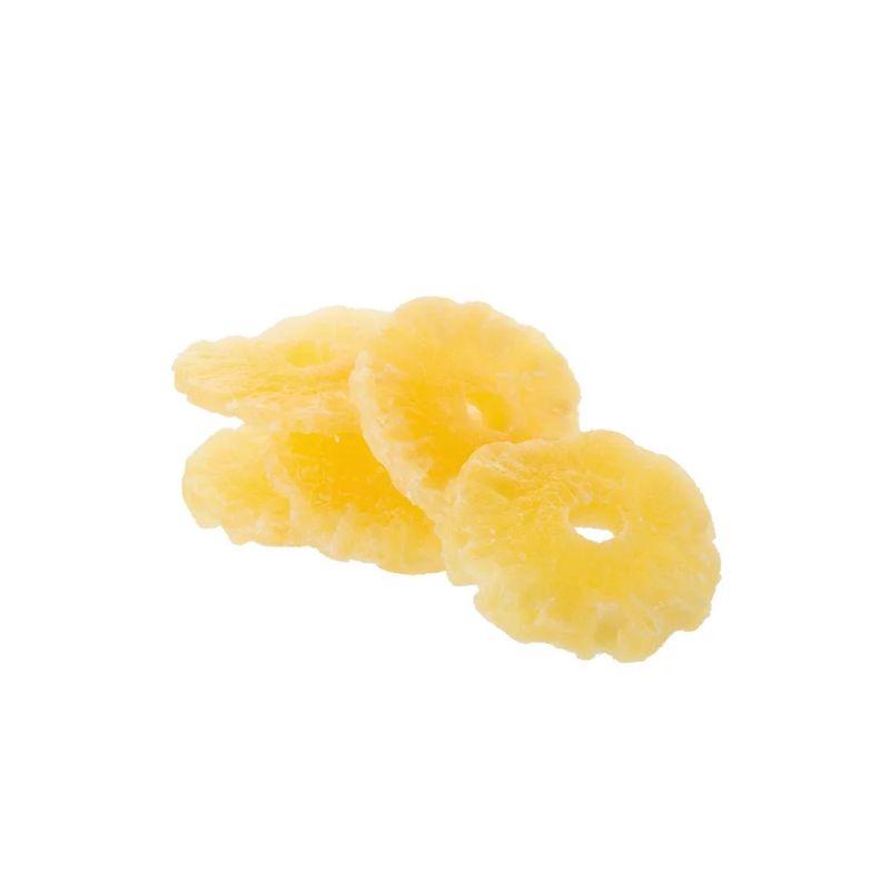 O abacaxi cristalizado é um produto que passa por um processo de cristalização, sendo submerso em uma solução saturada de açúcar, o que não só confere doçura, mas também atua como conservante, prolongando sua vida útil. A quantidade disponível é de 250g, ideal para consumo pessoal ou para uso em receitas. Para a conservação adequada, deve ser armazenado em local fresco e seco, em um recipiente hermético, evitando a exposição à umidade e ao calor excessivo. O uso seguro e recomendado inclui o consumo moderado devido ao seu alto teor de açúcar, sendo uma excelente opção para adicionar sabor e textura a diversos pratos. Tem nutrientes como vitamina C, manganês e fibras. Pode ser utilizado em receitas como saladas de frutas, bolos, tortas e até mesmo como cobertura para sorvetes, adicionando um toque doce e crocante a essas preparações.