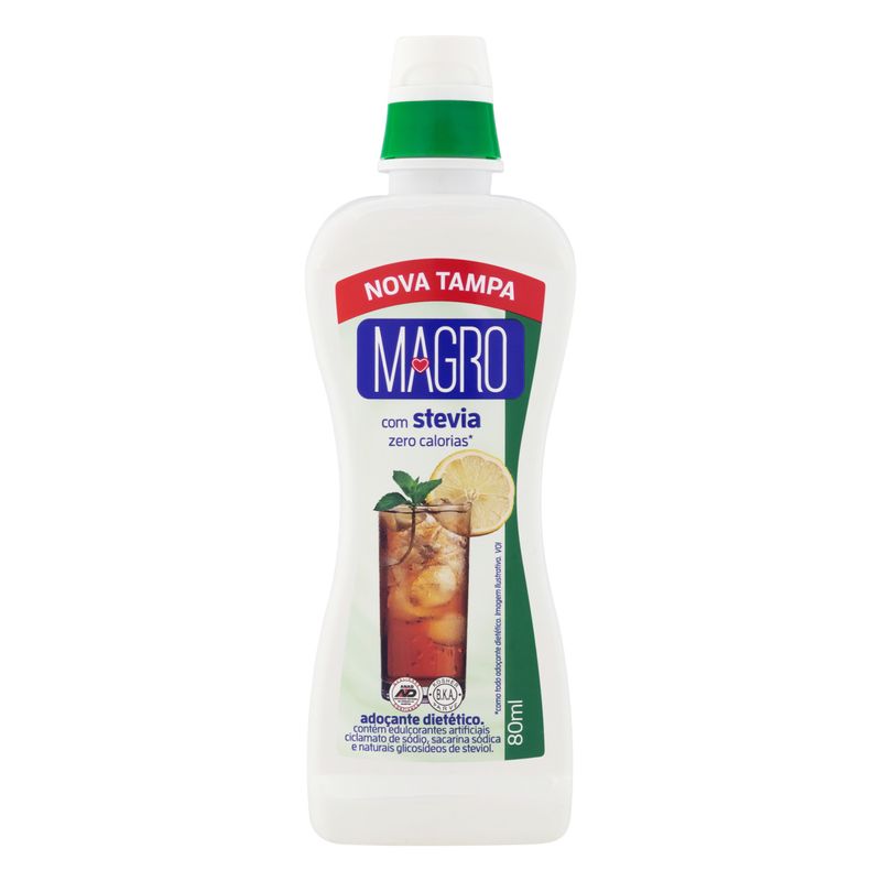 O adoçante magro com stevia vem em uma embalagem de 65 ml, ideal para ser transportado e utilizado em qualquer lugar. Sua fórmula é livre de calorias, permitindo que você desfrute de um sabor doce sem comprometer sua dieta. É importante armazenar em local fresco e seco, longe da luz direta, para preservar suas propriedades.