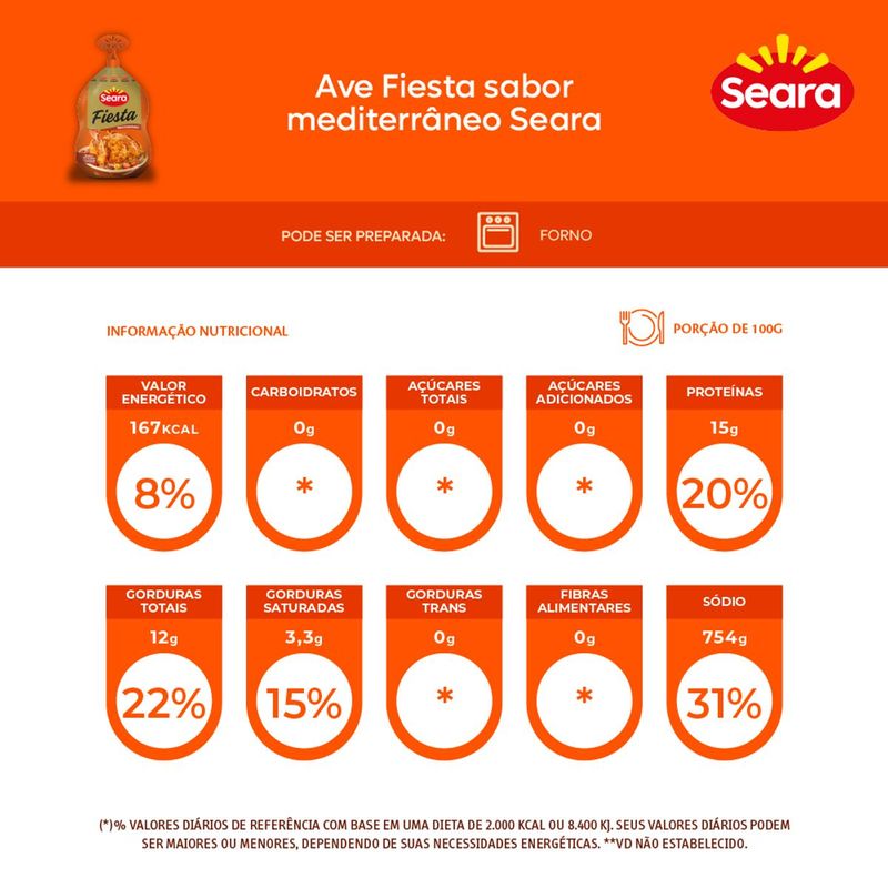 O frango mediterrâneo é temperado com ervas, tomate e cebola, além do mais, tem grande quantidade de carnes nobres. O termômetro Pulou, Assou da ave Fiesta avisa quando a carne atinge o ponto ideal, dessa forma, você vai apreciar um frango assado diferenciado, tenro por dentro e sequinho por fora. Seus convidados vão se surpreender!