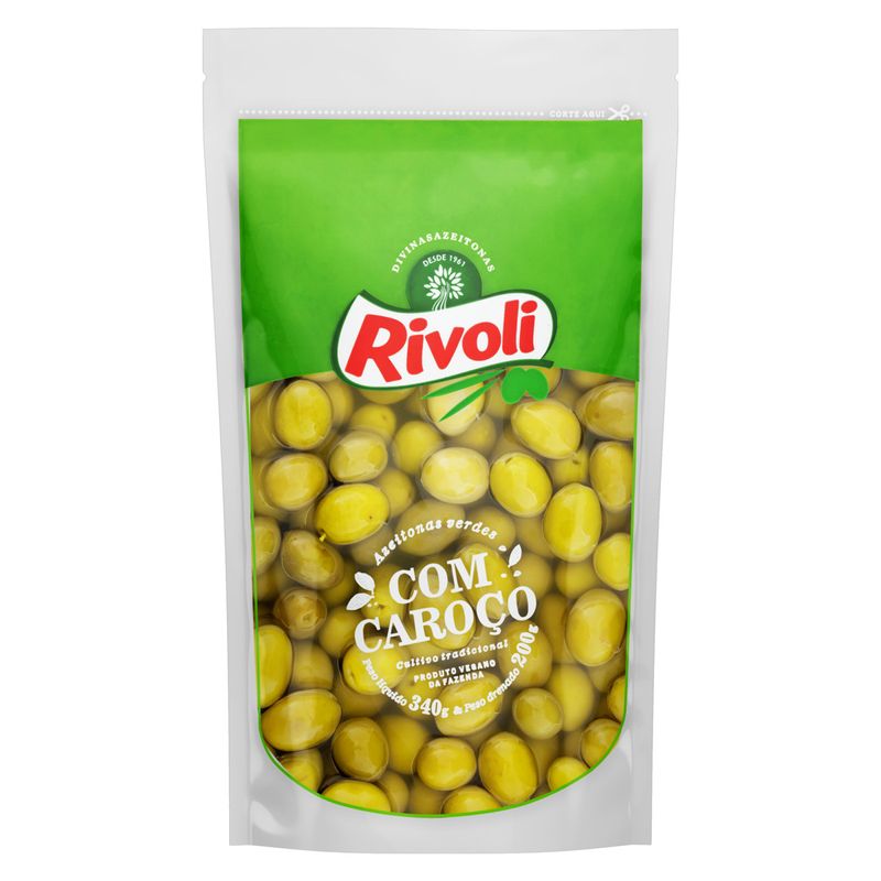 Azeitona Verde em Conserva Rivoli Clássica com Caroço Sachê 200g