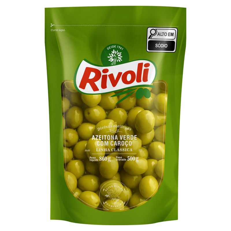 Azeitona Verde em Conserva Rivoli Clássica com Caroço Sachê 500g