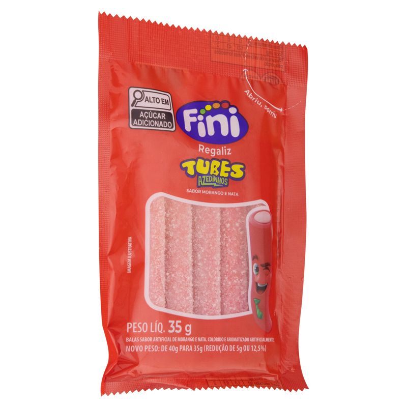 Balas de Gelatina Fini Tubes Morango Azedinhos 35g