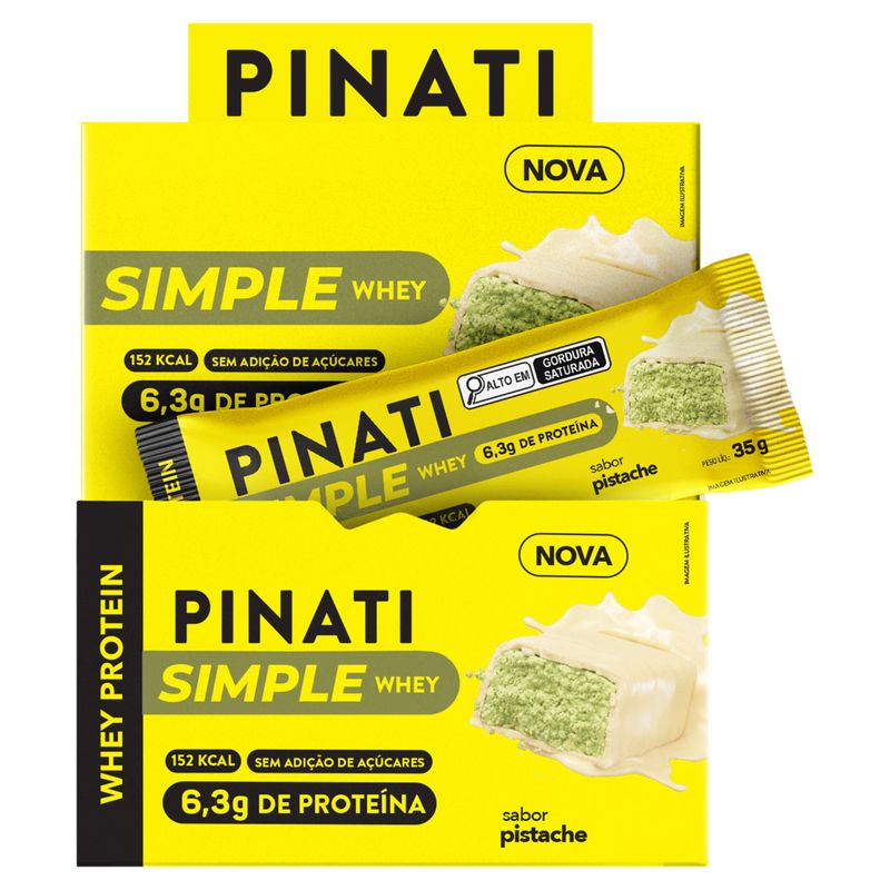 Barra de Proteína Pinati Simple Whey Protein Pistache Cobertura Chocolate Branco 35g