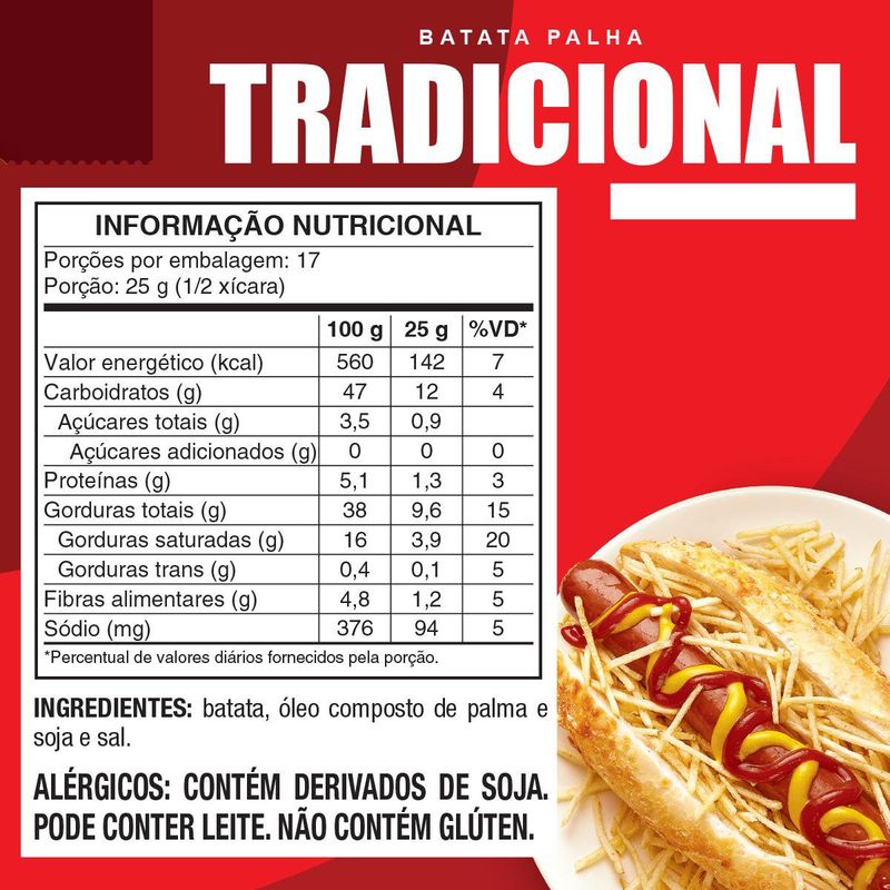 - Ingredientes: Batata, óleo vegetal e sal.