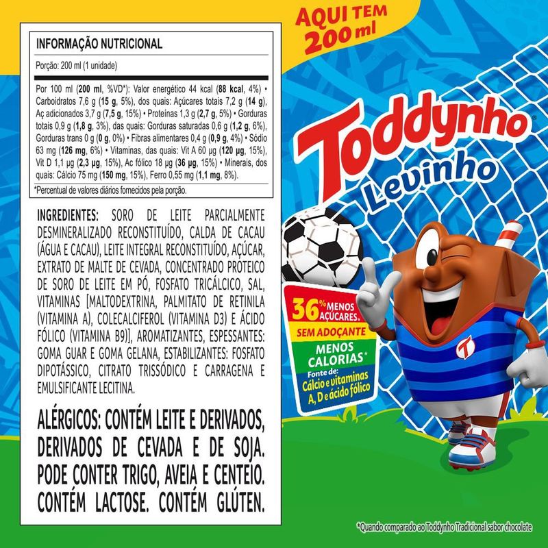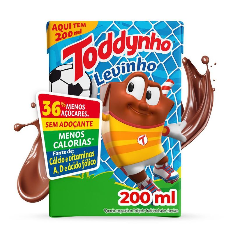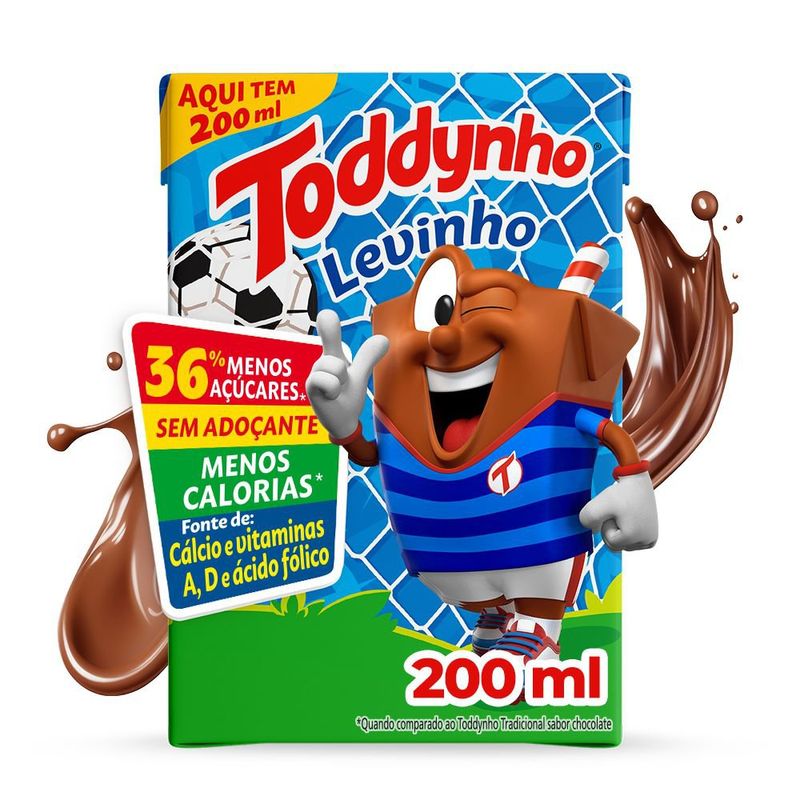 Toddynho® Levinho tem um sabor delicioso e 35% menos açúcares quando comparado ao Toddynho Tradicional sabor chocolate. Além de, não ter adoçantes e ser Fonte de Cálcio e Vitaminas A, C, D e Ácido fólico.