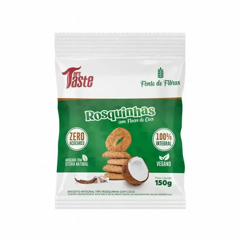 Biscoito Rosquinha Mrs Taste Integral Zero Açúcar Flocos de Coco 150g