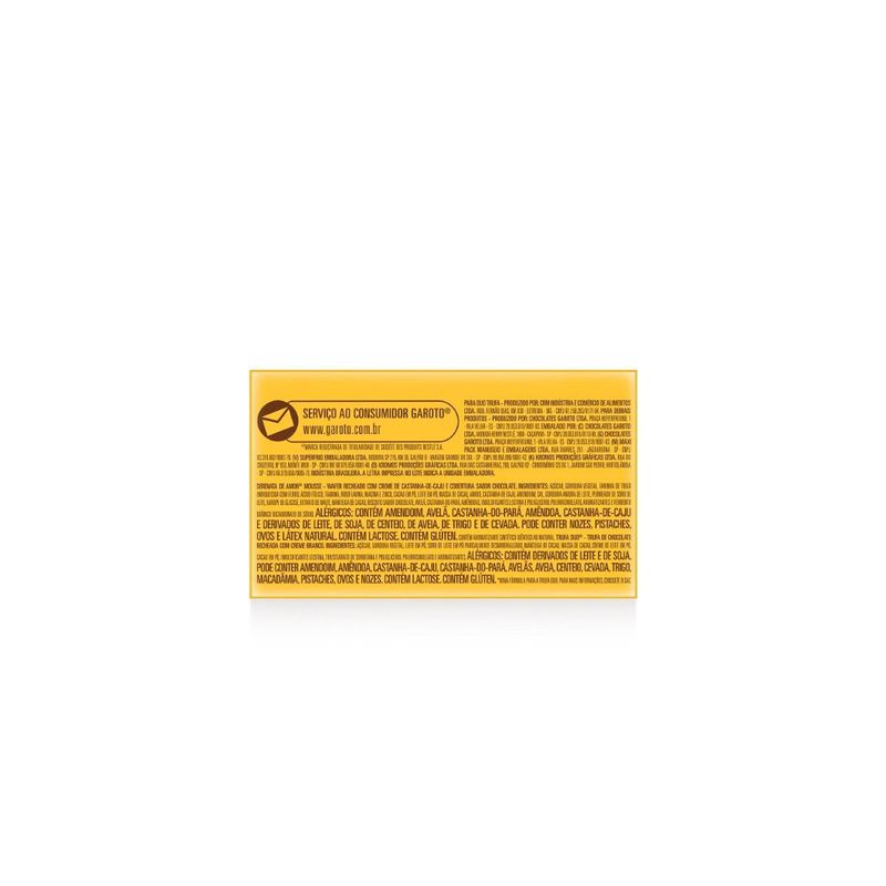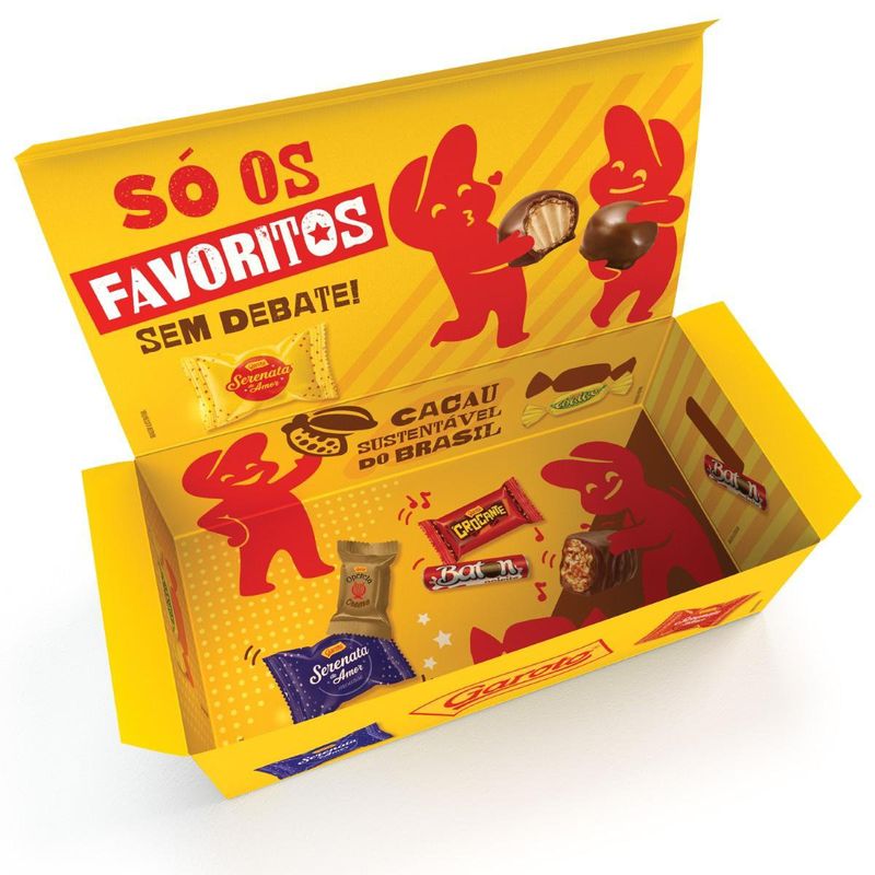 Bombom Garoto Sortido Caixa 220g – A Delícia em Cada Mordida Uma Experiência de Sabor Única O Bombom Garoto Sortido é uma seleção irresistível que combina diferentes recheios e sabores, proporcionando momentos de adoçamento e prazer a cada mordida. Com uma embalagem prática de 220g, essa caixa é perfeita para compartilhar com amigos e familiares em ocasiões especiais ou simplesmente para desfrutar em momentos de pausa do dia. Variedade Que Encanta Essa caixa vem repleta de bombons variados, garantindo que a experiência de degustação seja sempre surpreendente. Entre os sabores estão opções como chocolate ao leite, caramelo e outros recheios que fazem parte da tradição da marca, resultando em um mix que agradará a paladares diversos. É a escolha ideal para quem aprecia um mix de texturas e sabores num único produto. Produzido com Qualidade Fabricado pela renomada marca Garoto, o bombom é elaborado com matéria-prima de qualidade, resultando em chocolates cremosos e recheios que se harmonizam de forma excepcional. Essa preocupação com a qualidade garante que cada bombom não seja apenas um doce, mas uma experiência sensorial que envolve sabor e memória afetiva. Perfeito para Presentear Além de ser uma ótima escolha para o consumo pessoal, a embalagem dos Bombons Garoto Sortido também é uma excelente opção para presentear. Seja em datas comemorativas, celebrações ou como uma surpresa especial, esta caixa demonstra carinho e atenção, tornando qualquer momento mais doce e especial. Ideal para Todos os Momentos A versatilidade do Bombom Garoto Sortido permite que ele seja desfrutado em diferentes ocasiões: festas, reuniões familiares, ou mesmo como um agrado após um longo dia. Com a opção de variados sabores, é fácil agradar a todos, tornando esses bombons a companhia ideal para os momentos de descontração e felicidade.