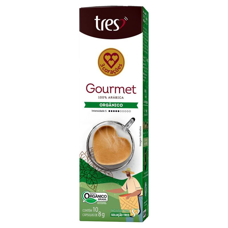 Café em Cápsula 3 Corações Gourmet Torrado e Moído Orgânico Caixa 80g C /10 Unid