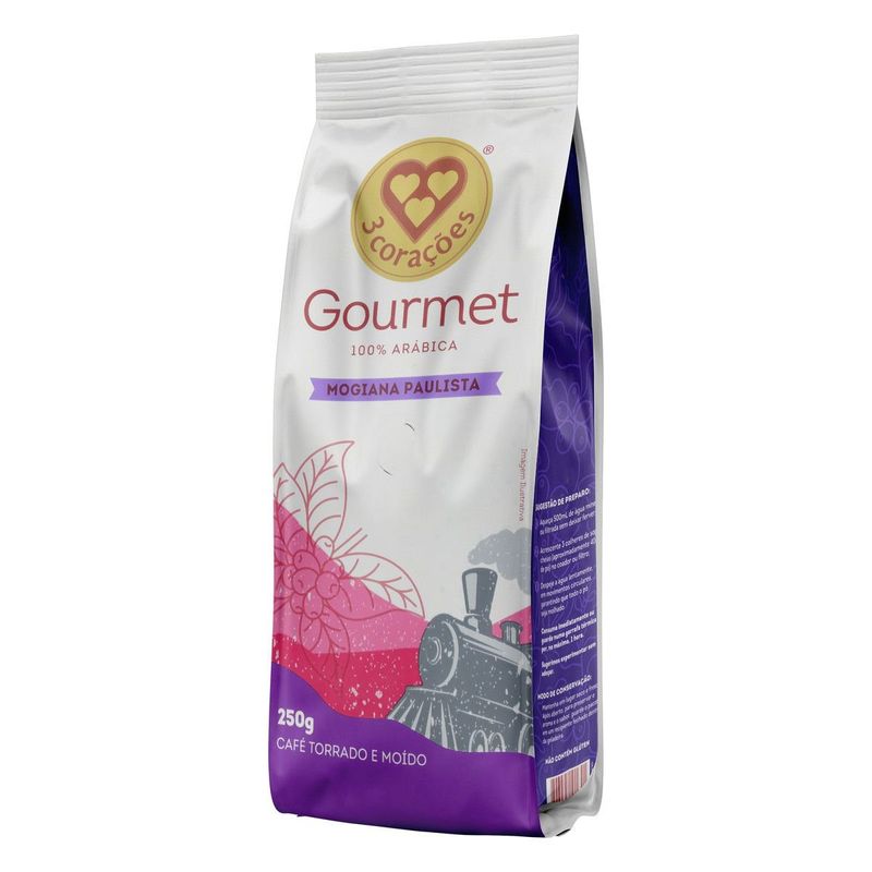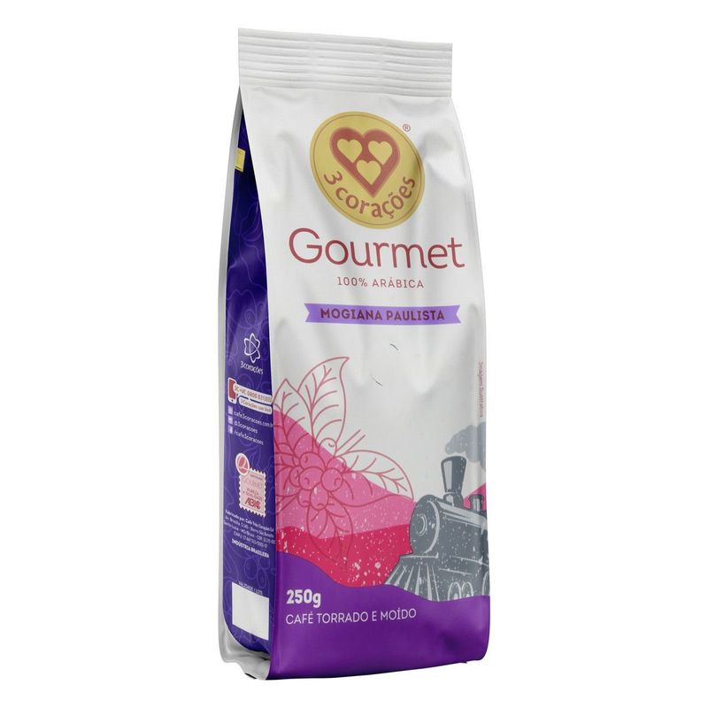 Café em Pó 3 Corações Gourmet Torrado e Moído Mogiana Paulista Pacote 250g