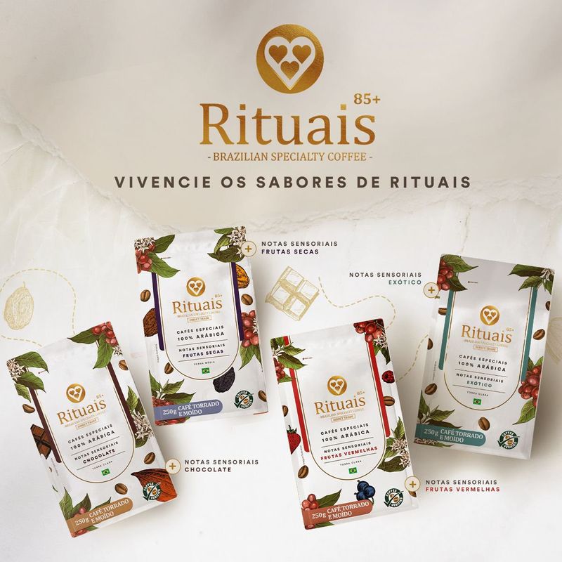 Café em Pó 3 Corações Rituais 85+ Torrado e Moído Exótico Pouch 250g