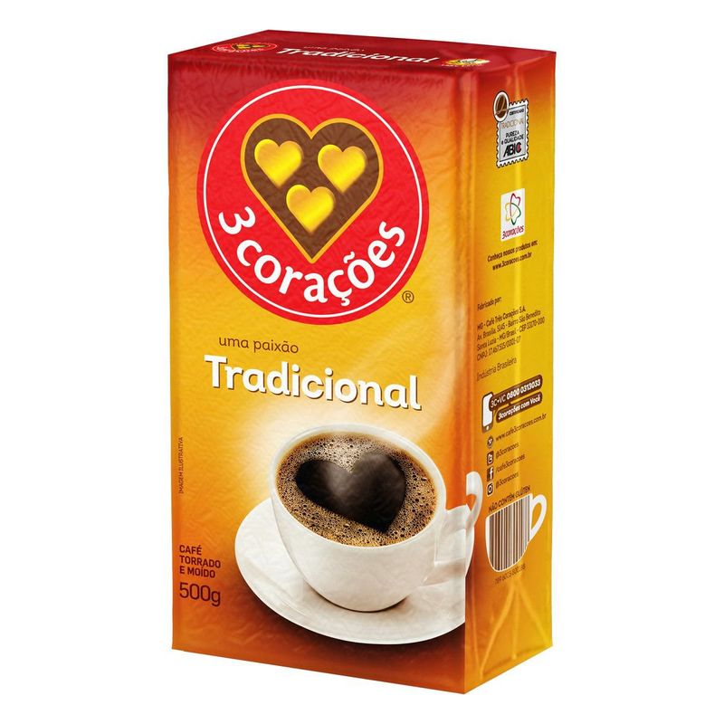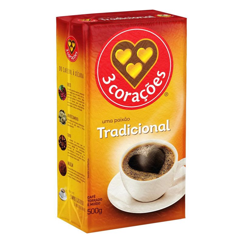 Café em Pó 3 Corações Torrado e Moído Tradicional a Vácuo 500g