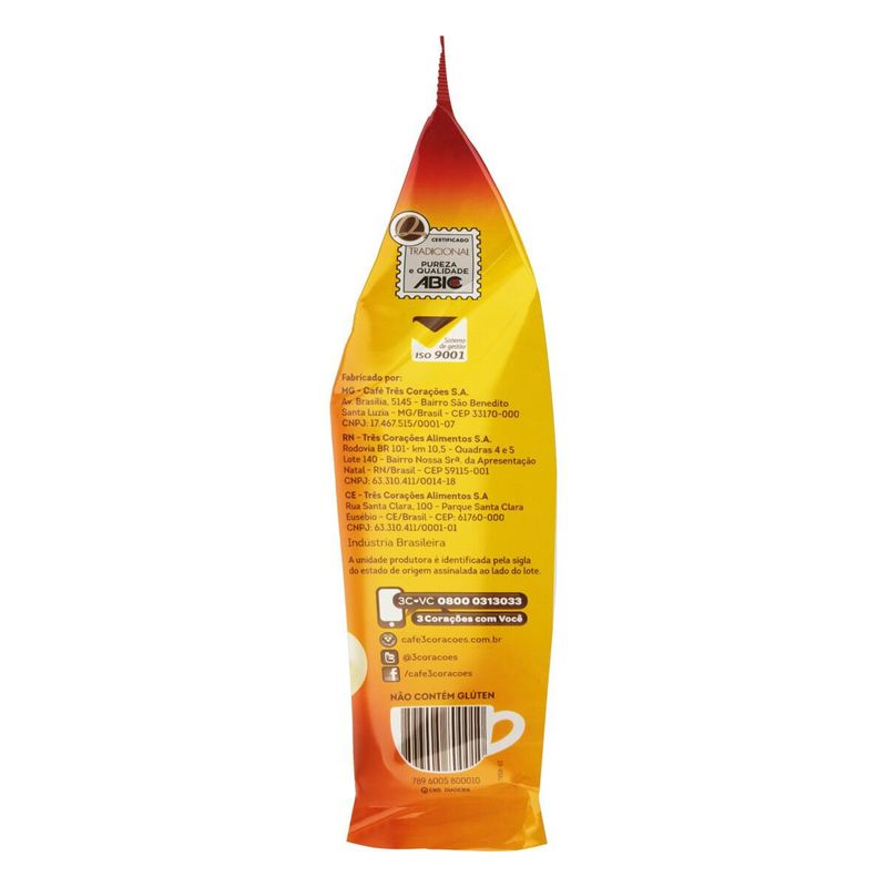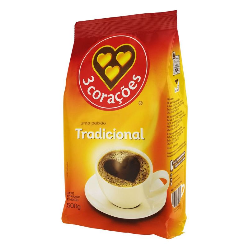 Café em Pó 3 Corações Torrado e Moído Tradicional Pacote 500g