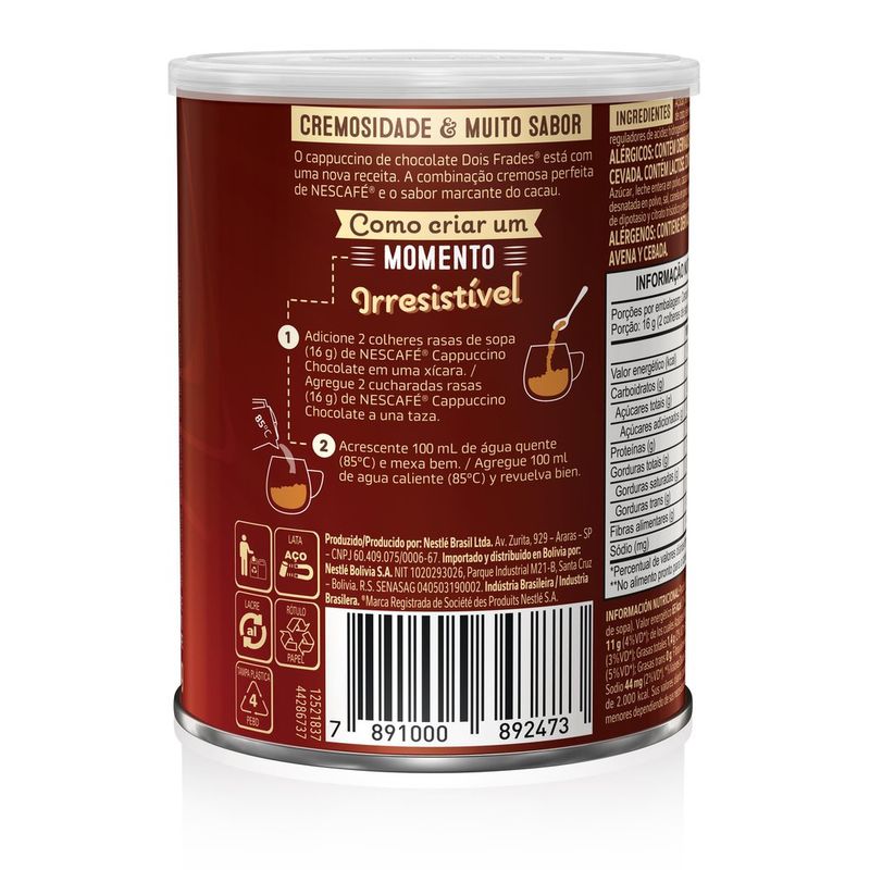 Café Solúvel Nescafé Cappuccino Dois Frades Lata 180g