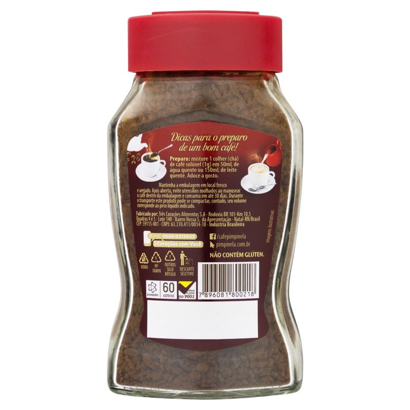 Comodidade em Cada Café A apresentação em frasco de vidro não só preserva a qualidade do produto, mas também facilita o armazenamento e o uso. Com Café Solúvel Pimpinela, você pode preparar uma bebida reconfortante em questão de segundos, bastando adicionar água quente, ideal para aqueles que possuem uma rotina agitada, mas não abrem mão do prazer de um bom café.