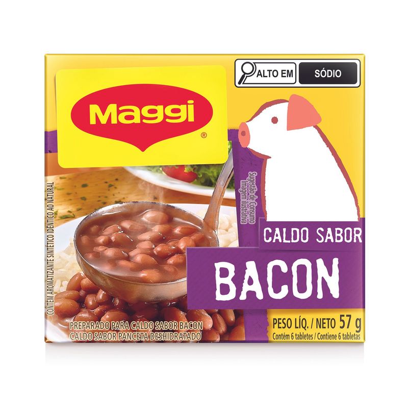 O tradicional Caldo Maggi® no sabor bacon é muito bom para incrementar o sabor dos seus pratos. Além versátil, pode ser utilizado em qualquer tipo de preparação.