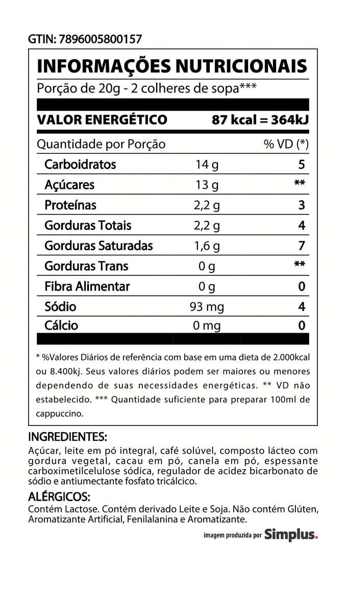 Cappuccino Solúvel 3 Corações Classic Pote 200g