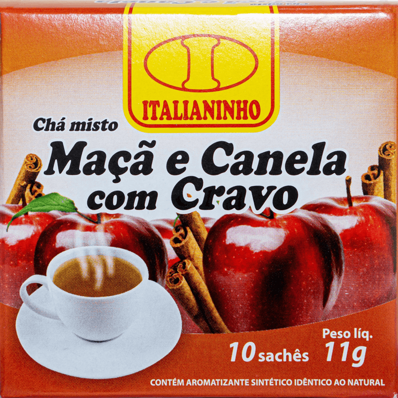 Descubra o prazer do Chá Italianinho Este delicioso chá combina as notas adocicadas da maçã com o toque envolvente da canela, criando uma infusão perfeita para momentos de relaxamento e aconchego. Cada embalagem contém 10 unidades com 11g, proporcionando praticidade e sabor a cada xícara.