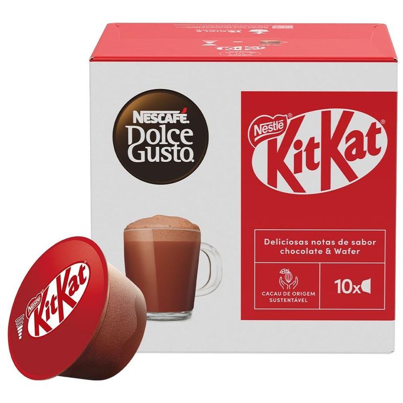 Aprecie um café delicioso e doce com o Café em Cápsula Nescafé Dolce Gusto KitKat 10 Cápsulas 170g. A combinação perfeita de café cremoso Nescafé e o sabor crocante e chocolatoso de KitKat. Em minutos, você prepara uma bebida deliciosa que traz a mistura equilibrada de café e chocolate, ideal para aqueles momentos de prazer. Prático e saboroso, com 10 cápsulas na embalagem, o Nescafé Dolce Gusto KitKat transforma qualquer pausa em um momento doce e aconchegante.