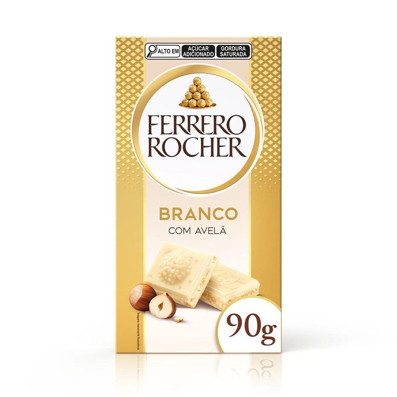 Descubra Ferrero Rocher Tablete Branco: Chocolate branco com recheio de avelãs. O prazer em se surpreender!
