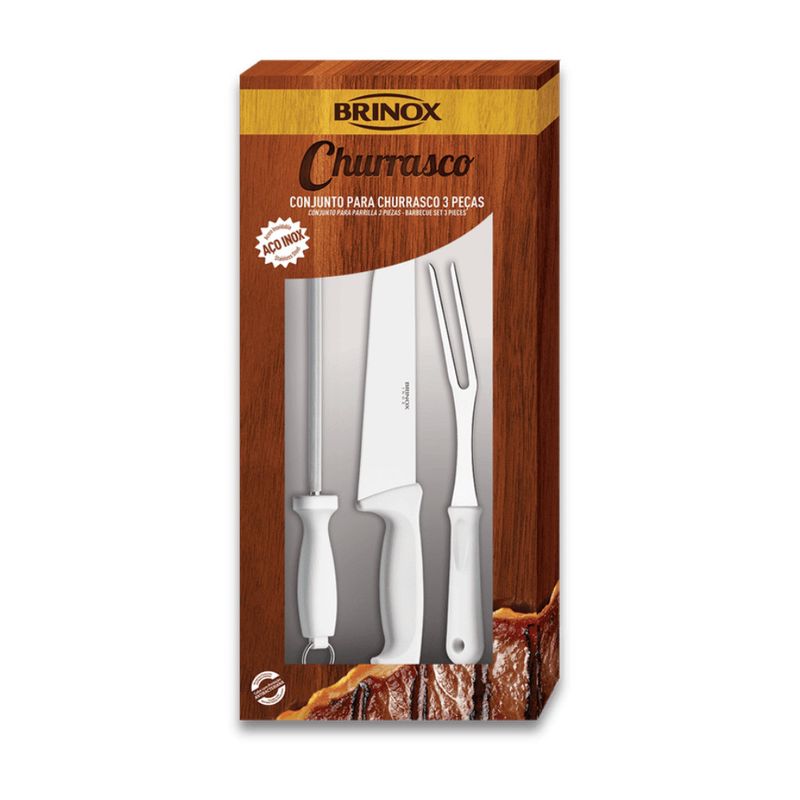 CJ Churrasco Brinox – Faca, Garfo e Chaira para um Churrasco Perfeito