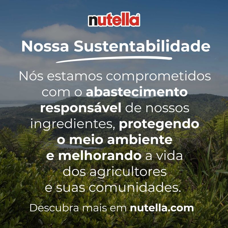 Nutella® é perfeito começar o dia de forma positiva. Ideal para deixar o seu café da manhã ainda mais agradável. Preparado com sete ingredientes especiais, o creme de avelã com cacau é sucesso em todo o mundo e vai fazer a alegria na sua casa. O creme de avelã segue encantando os paladares por seu sabor e cremosidade únicos. Há mais 50 anos deixando o café da manhã mais saboroso, com uma energia extra para começar o dia. *Imalgens meramente ilustrativas*