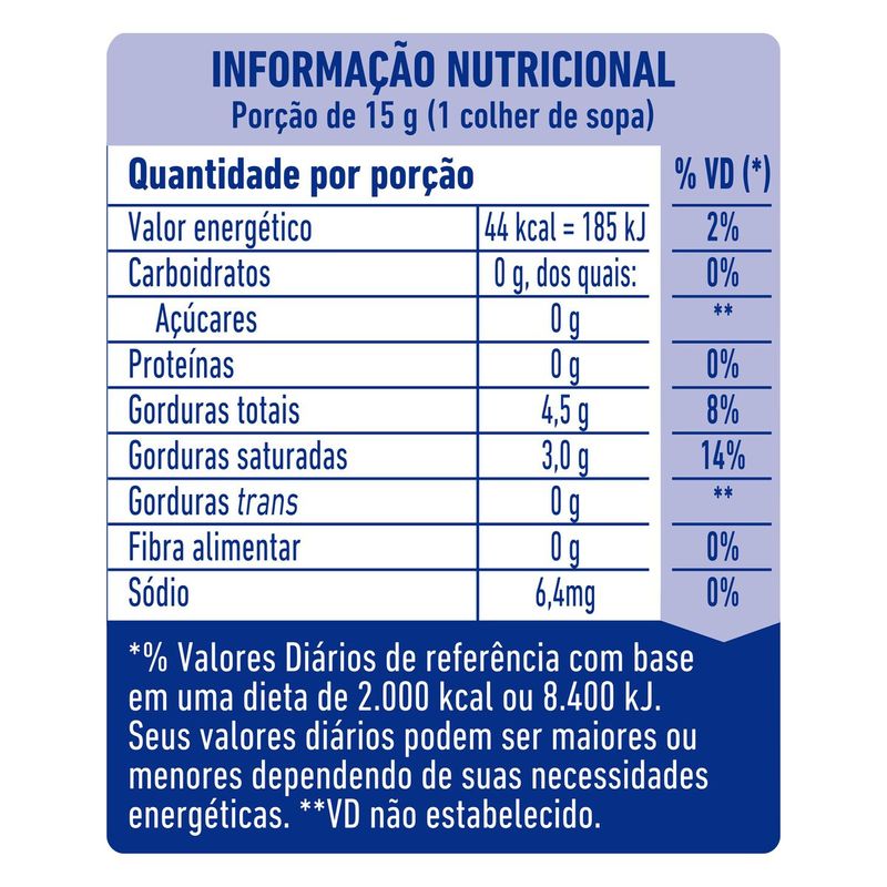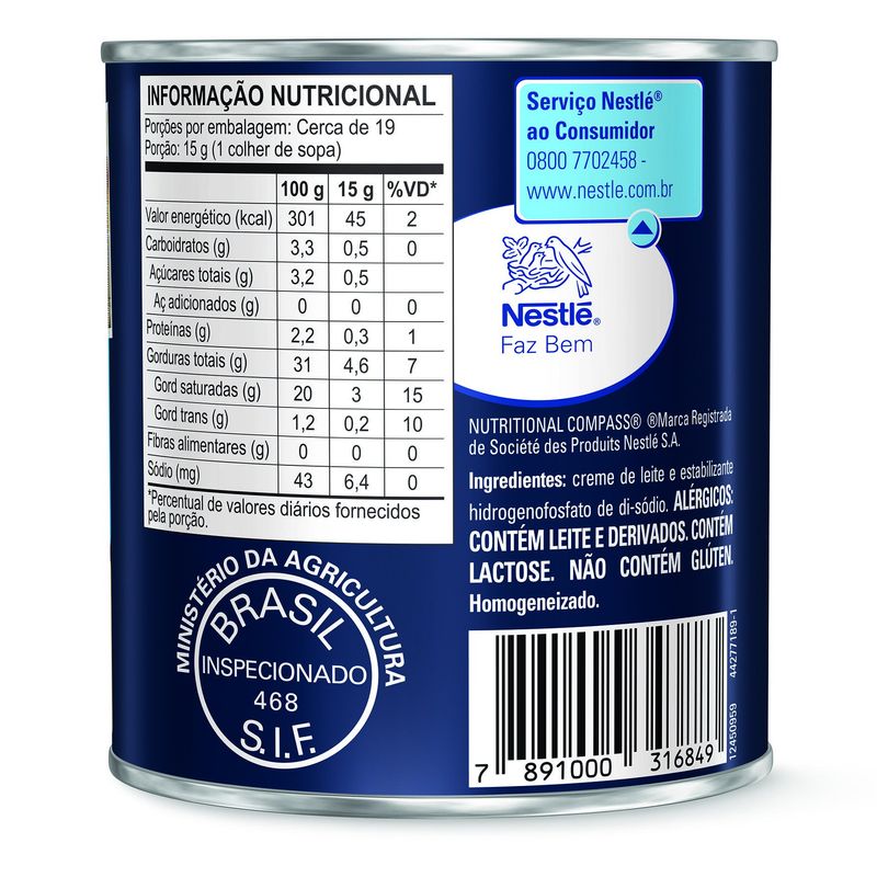 - Ingredientes: Creme de leite, estabilizantes e conservantes.