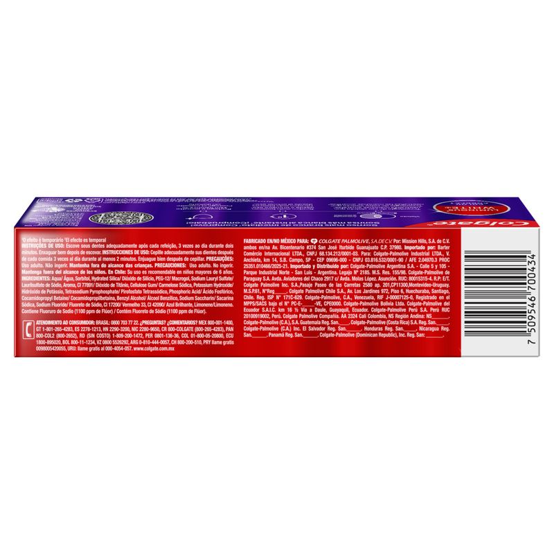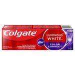 Com o creme dental Colgate Luminous White Color Correct obtém dentes mais brancos com sua fórmula corrige instantaneamente tons amarelados¹ e manchas nos dentes. Agindo como um clareador dental superior que protege o esmalte dos dentes sem danificar, graças à sua tecnologia de corante violeta, com efeito, clareador temporário e fácil de usar. ¹O efeito temporario.