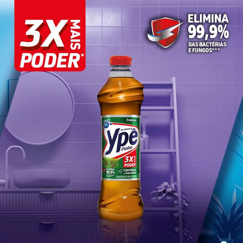 O Desinfetante Pinho Ypê Tradição elimina até 99,9% dos germes, bactérias e fungos do seu banheiro, deixando um perfume agradável de limpeza no ar. É indicado desde a faxina pesada até a limpeza diária da sua casa, podendo ser utilizado em grandes e pequenas superfícies como banheiros, ralos, pias, vasos sanitários, etc.