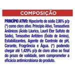 Diluição recomendada para limpeza: diluir 3/4 de um copo (150 ml) em 1/2 balde de água (5 L) para limpar pisos, paredes e áreas externas