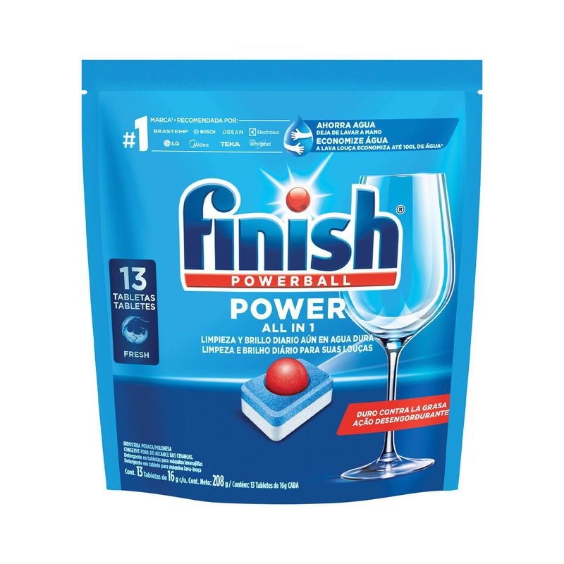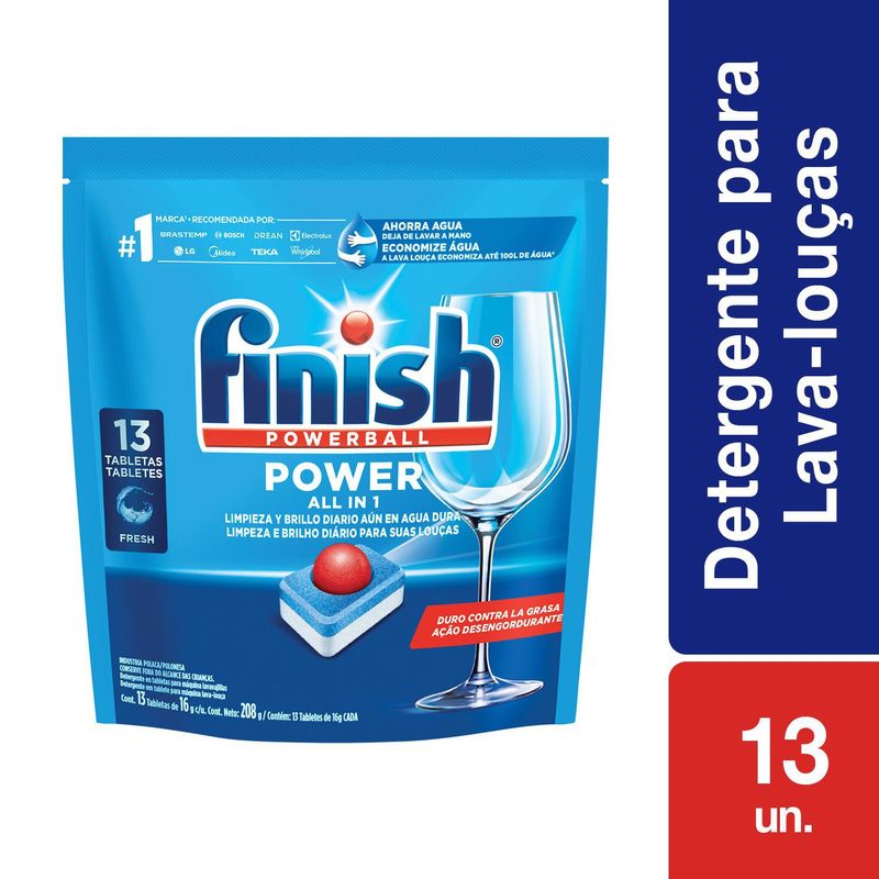 LimpezaCozinhaDetergenteDetergente Tablete para Máquina de Lavar Louças Finish Powerball All In1 Pouch 208g 13 Unidades