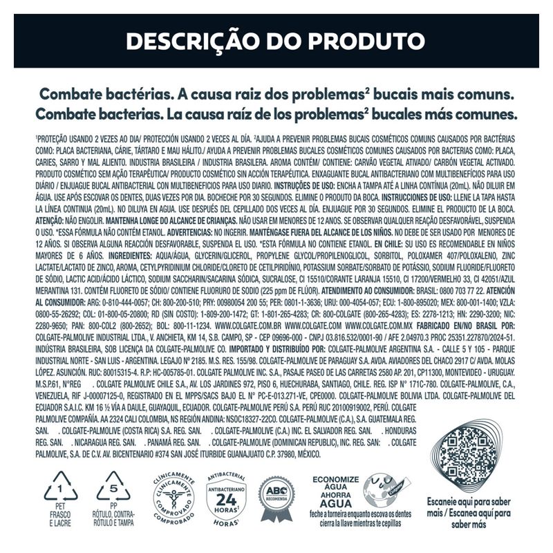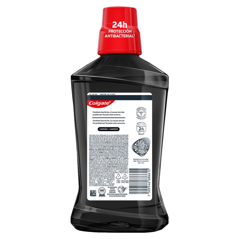 Esse enxaguante bucal Colgate Total 12 Carvão é antibacteriano, com o poder do zinco. O zinco apoia as defesas naturais da sua boca e combate germes e bactérias nos dentes, língua, bochechas e gengiva, proporcionando uma limpeza total da boca por até 12 horas. Além disso, proporciona um sorriso branco e saudável por mais tempo a você.