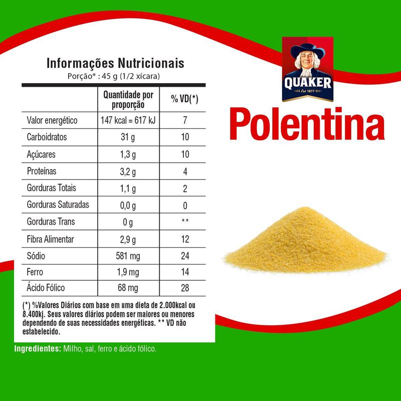 Flocos De Milho Pré-Cozido Quaker Polentina 500g