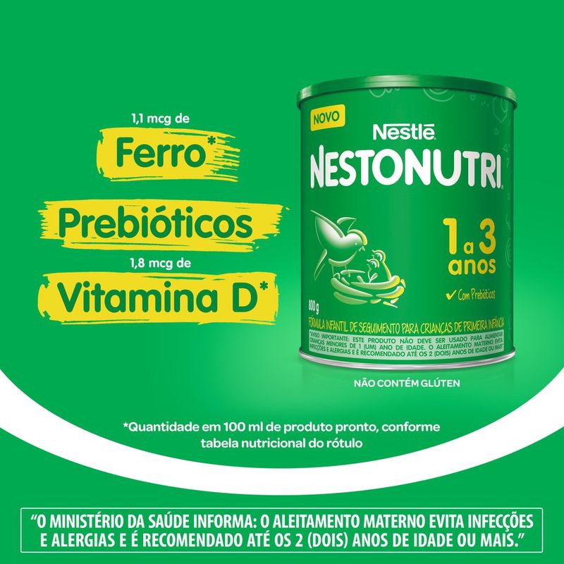Nestonutri é uma fórmula infantil de seguimento para crianças de primeira infância 1 a 3 anos), com prebióticos e nutrientes adequados para essa fase tão importante. Converse com o pediatra ou nutricionista do seu filho para receber orientações nutricionais adequadas.