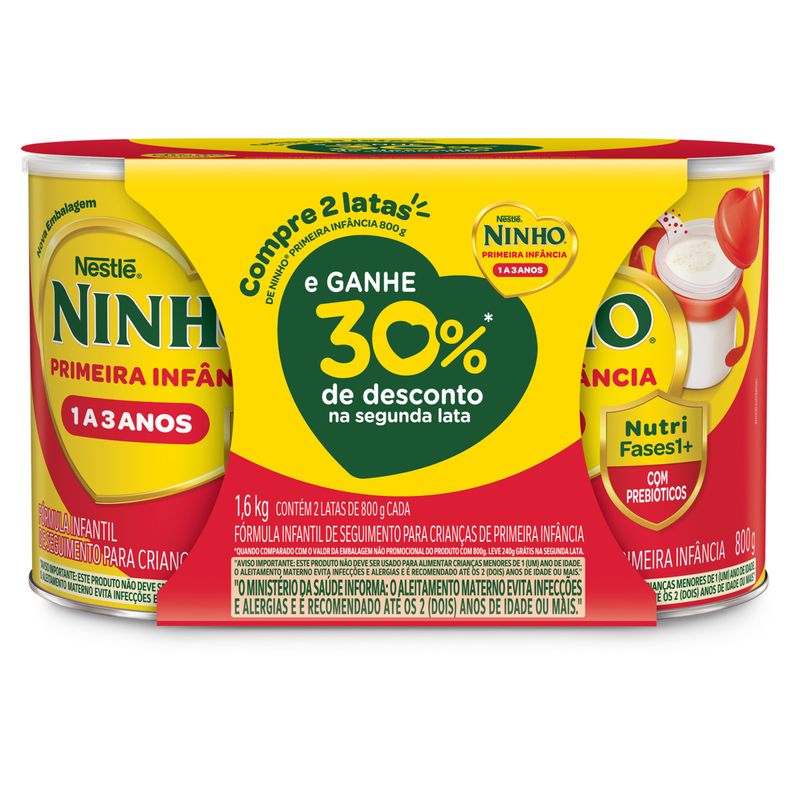 MerceariaAlimento InfantilFormulasFórmula Infantil Ninho Fases 1+ Lata 800g com 2 Unid Grátis 30% de Desconto na Segunda Lata