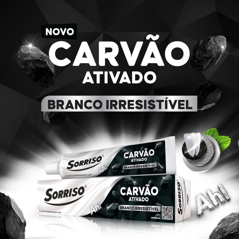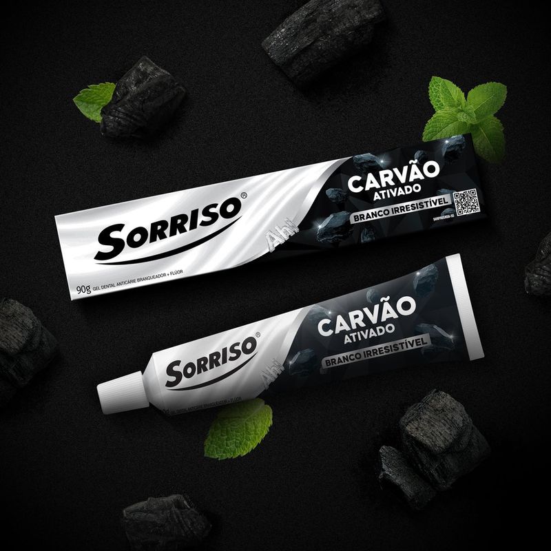 O creme dental clareador Sorriso Carvão Ativado Branco Irresistível oferece proteção anticárie para fortalecer seus dentes e deixar seu hálito super refrescante.