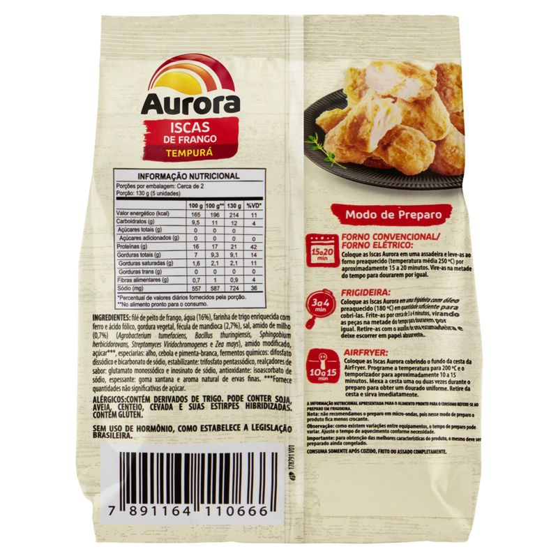Iscas de Frango Empanado Aurora Tempurá 275g