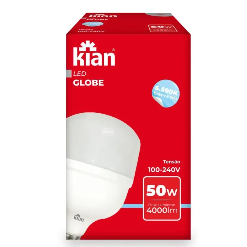 Lâmpada LED Kian Globe 50W 6,5K Bivolt – Iluminação Eficiente e Sustentável