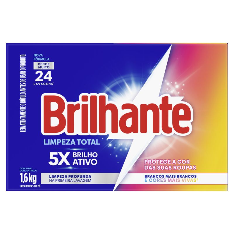 Lava Roupas em Pó Brilhante Limpeza Total para Roupas Brancas e Coloridas Caixa 1.6Kg