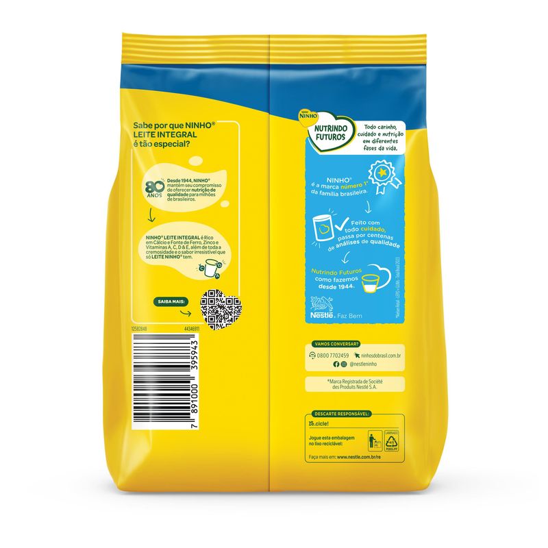 Sabe por que NINHO® LEITE INTEGRAL é tão especial? Desde 1944, NINHO® mantém seu compromisso de oferecer nutrição de qualidade para milhões de brasileiros. NINHO® LEITE INTEGRAL é Rico em Cálcio e Fonte de Ferro, Zinco e Vitaminas A, C, D & E, além de toda a cremosidade e o sabor irresistível que só LEITE NINHO® tem.