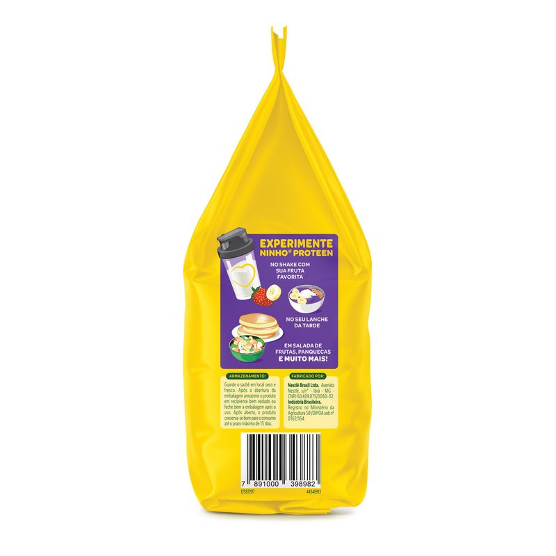 NINHO® Proteen foi desenvolvido para acompanhar o crescimento dos brasileiros a partir dos 11 anos. Desenvolvido com Nutri Ação: um mix de 10g de Proteína, Cálcio e Vitamina D, que auxilia no desenvolvimento muscular e ósseo. Além disso, possui vitaminas do Complexo B (B1, B2, B6 e B9), que contribuem para energia. O delicioso sabor e qualidade de NINHO® que você já conhece, com proteína e 55% menos gorduras1 1Reduzido em gorduras totais. Este não é um alimento baixo ou reduzido em valor energético. Quando comparado ao NINHO® Leite em pó integral.