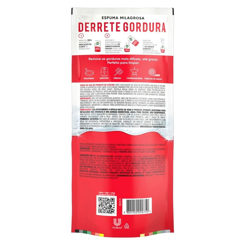 O Limpador Especialista Cif Derrete Gordura é um desengordurante poderoso que remove todo tipo de gorduras na hora, mesmo a mais incrustada Com sua espuma desincrustante, o desengordurante Cif remove as gorduras mais difíceis dos utensílios, até mesmo graxa O removedor de gordura pesada Cif possui uma nova fórmula com espuma potente que remove a gordura incrustada na hora, sem precisar esfregar e sem danificar os utensílios Cif se preocupa com a limpeza de sua casa e oferece uma linha de produtos de limpeza poderosos e versáteis que atendem a todas as suas necessidades. Cif é cuidado com a sua casa O limpador possui uma fórmula avançada, que contém moléculas de ação rápida que penetram nas superfícies, facilitando a remoção das gorduras mais difíceis, sem esfregar O desengordurante Cif em formato refil econômico remove na hora, e sem esforço, as gorduras de diversos utensílios, tais como churrasqueira, frigideira e grelha. Cif. Sinta a limpeza acontecer! O Limpador Especialista Cif Derrete Gordura possui uma poderosa espuma desincrustante, que remove as gorduras mais difíceis na hora. Ele possui uma fórmula avançada, que contém moléculas de ação rápida que penetram nas superfícies, facilitando a remoção das gorduras incrustadas. Com sua nova fórmula, Cif Derrete Gordura possui uma espuma potente que desengordura, sem precisar esfregar e sem danificar os utensílios. Ele é um limpador de uso geral poderoso que vai ser seu grande aliado na limpeza pesada, pois você verá a gordura desaparecer sem nenhum esforço. Limpe todos os seus utensílios com o desengordurante Cif e fique livre de sujeiras e gorduras, até mesmo as mais difíceis como graxa. Este produto é perfeito para diversos utensílios como: churrasqueira, frigideira, grelha e marcas de graxa, deixando-os limpos e brilhantes. Os produtos de limpeza da linha Cif Especialistas possuem fragrância agradável e ajudam a fazer a limpeza diária da sua casa com o cuidado que ela merece. O Limpador Cif Derrete Gordura em formato Refil Econômico, é ideal para fazer o reabastecimento de seu produto no formato gatilho de forma simples e econômica, sem sujeira. Com o produto no gatilho, é possível limpar e alcançar facilmente até as superfícies verticais. Conheça agora toda a linha de Cif Especialistas, disponível em três diferentes formatos: refil econômico, gatilho e spray, para deixar a experiência do uso dos produtos mais fácil e conveniente na hora de cuidar da sua casa. Cif. Sinta a limpeza acontecer!