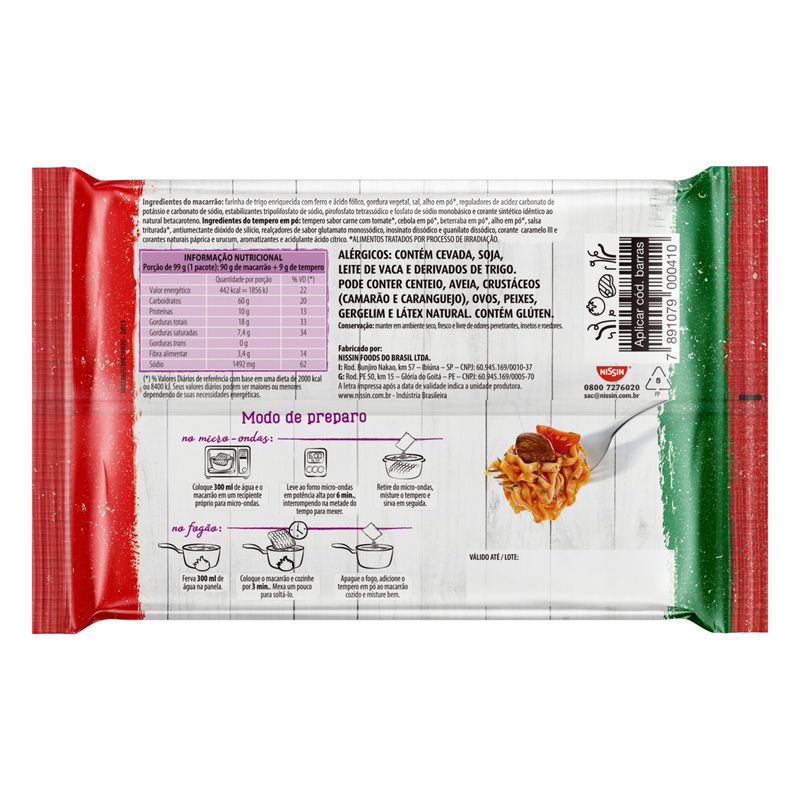 Macarrão Instantâneo Nissin Carne c/ Tomate Pacote 99g