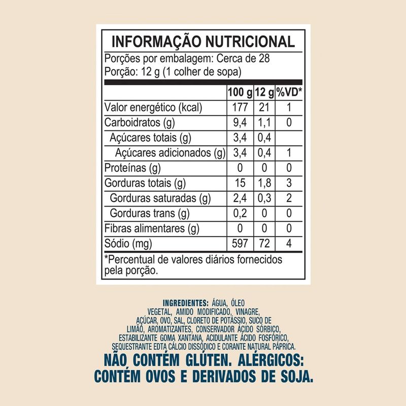 - Tipo de Produto: Maionese Light