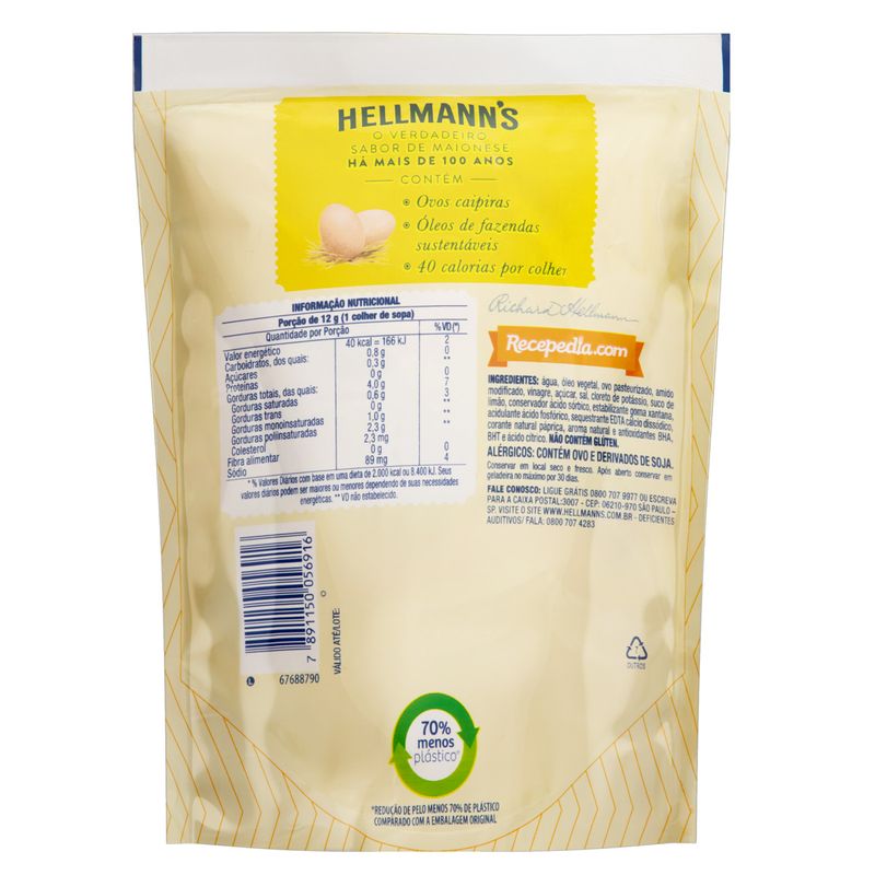 Com uma receita que combina o tradicional sabor da maionese com uma textura cremosa, a Hellmann's se destaca por sua qualidade. Cada porção oferece um equilíbrio perfeito entre sabor e consistência, tornando suas preparações ainda mais deliciosas. Seja para um lanche rápido ou uma refeição elaborada, essa maionese é um complemento que eleva o paladar.
