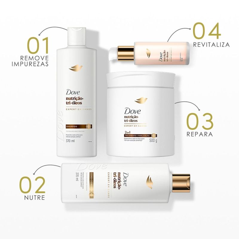 Para resultados ainda mais eficazes, combine com o shampoo, condicionador e finalizador da linha Dove Nutrição Tri-Óleos. Produto dermatologicamente testado e cruelty-free.